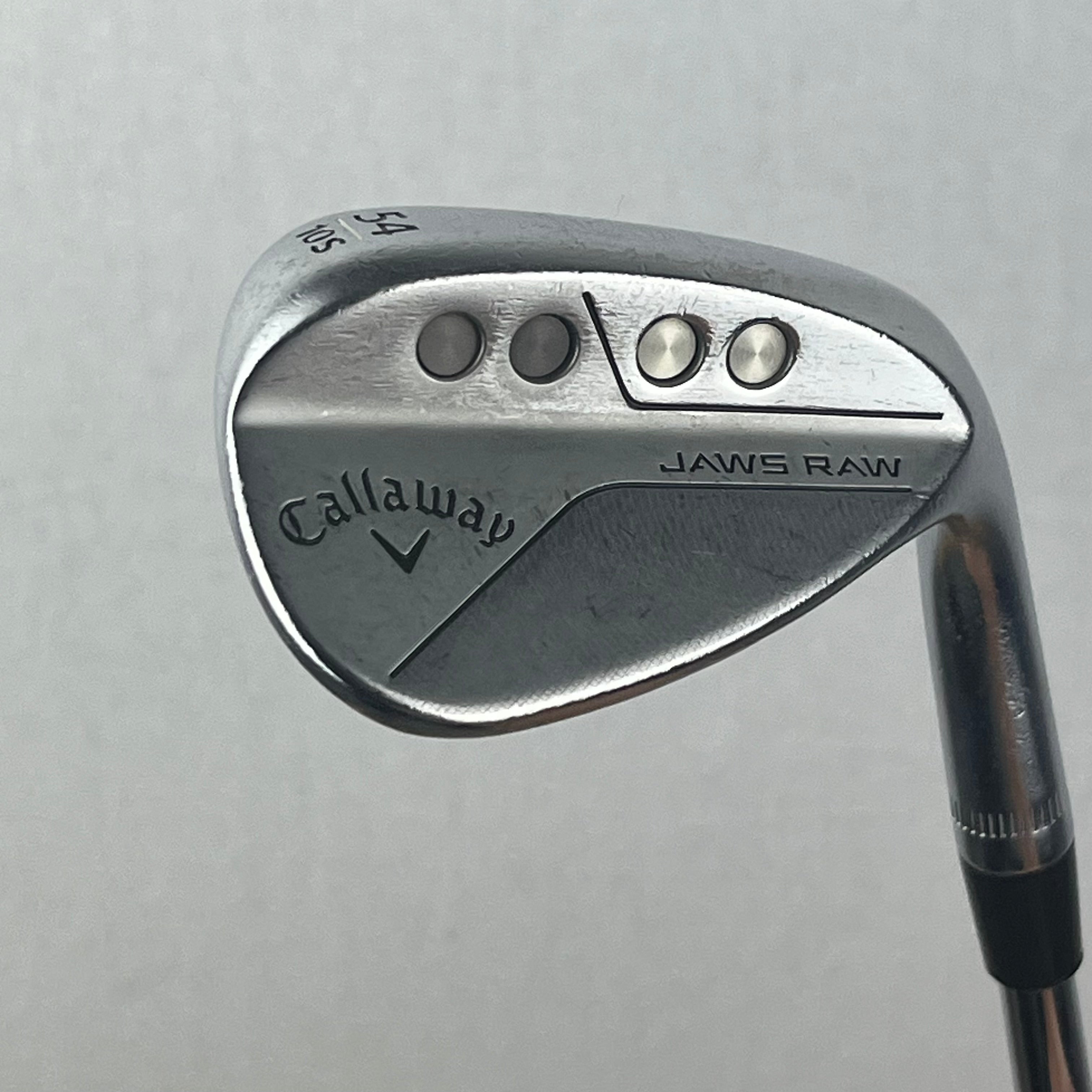 The Jaws Raw 54° (10S) gives aggressive groove spin and versatile turf interaction. Perfect for reliable mid-range wedge play.