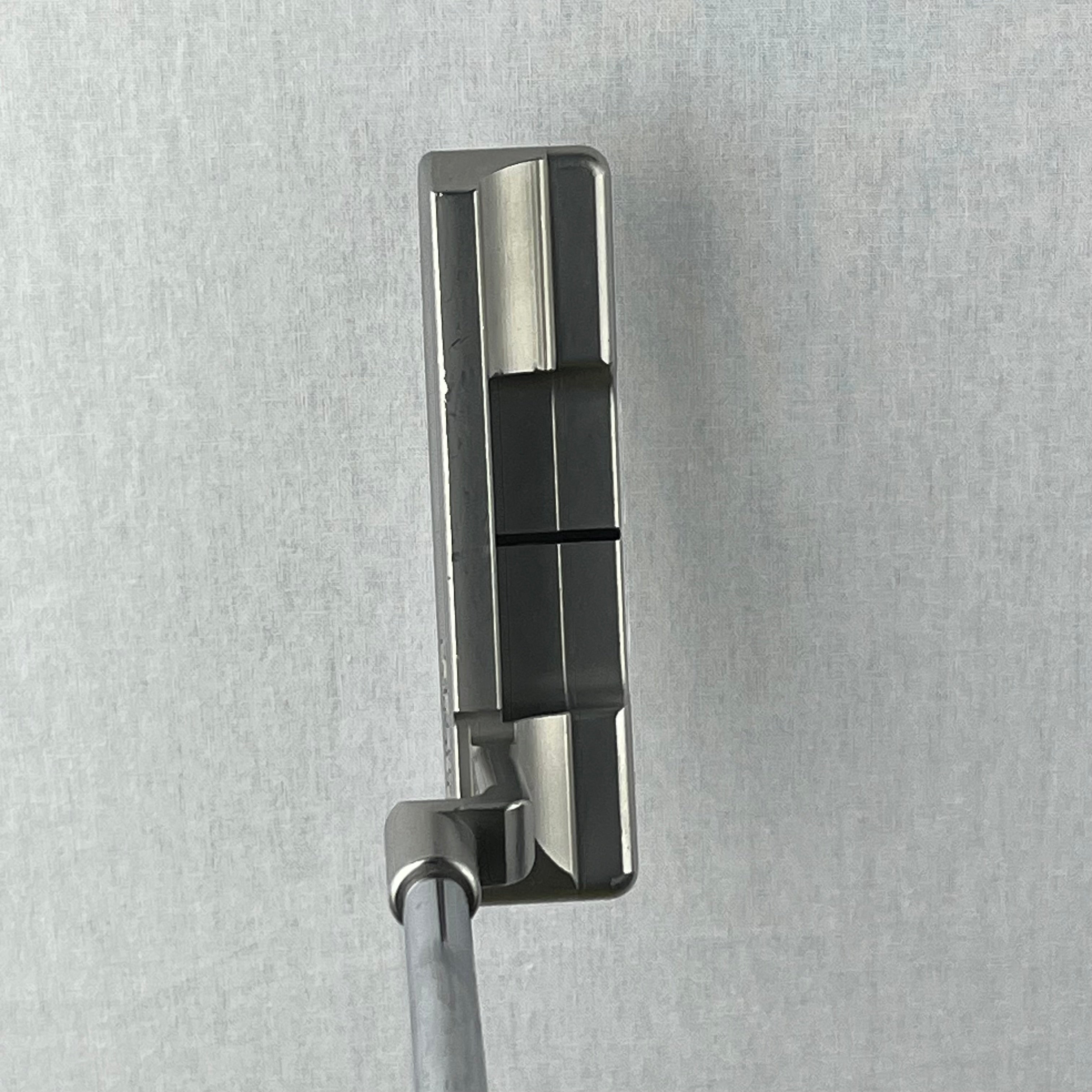 Classic blade putter with a milled face, refined plumbing neck, and tungsten sole weights for stability and feel.